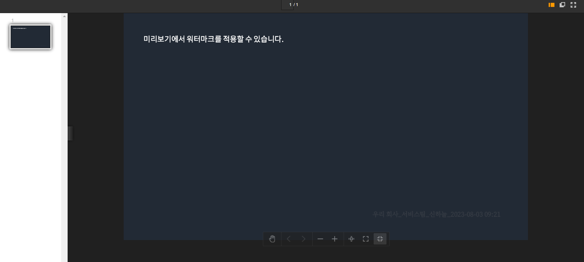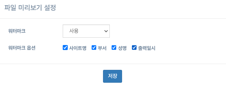 문서 보안을 강화하기 위해 미리보기 시 소속을 워터마크로 표시하는 기능이 추가되었습니다. 관리자가 직접 관리자 메뉴에서 워터마크 설정이 가능합니다.