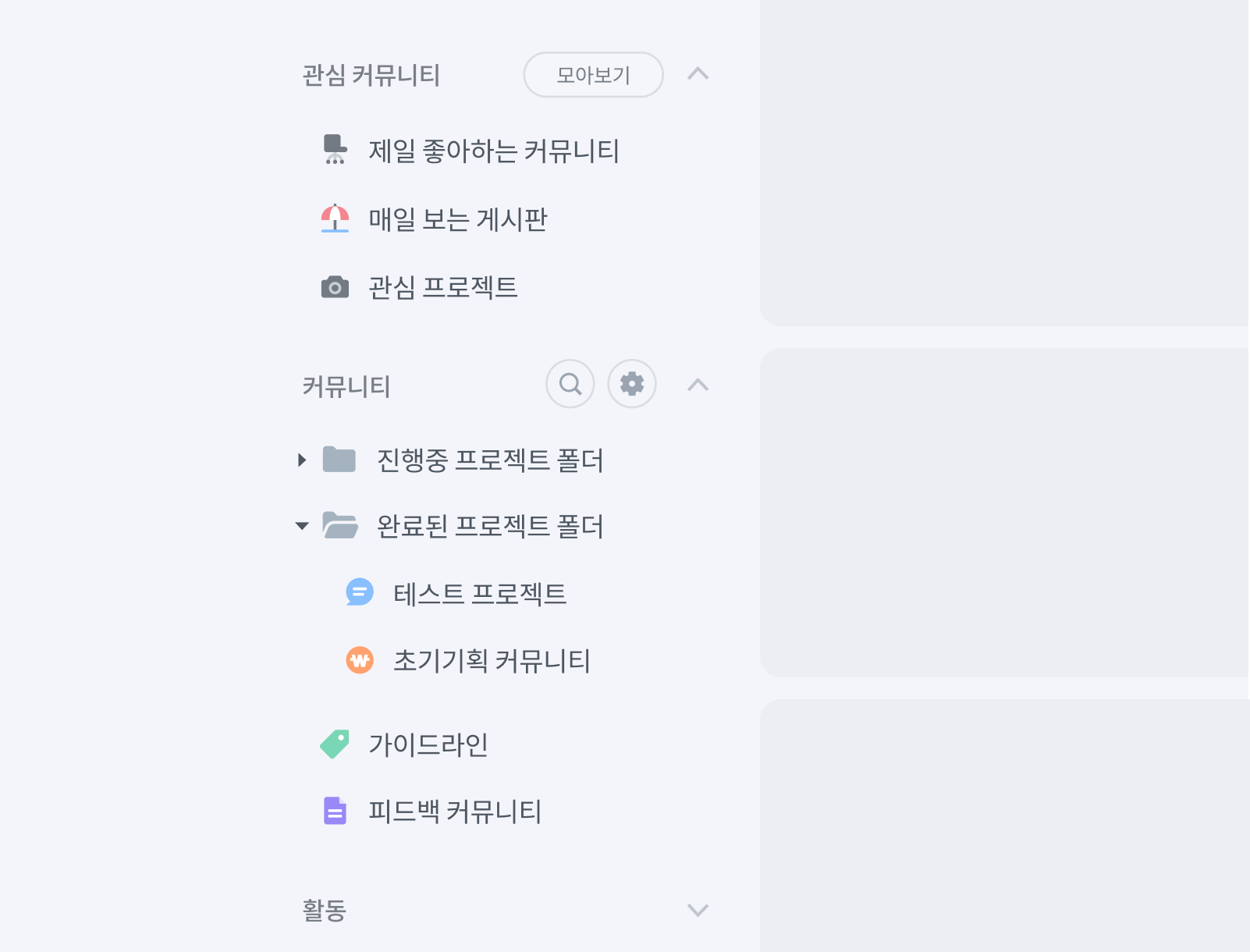 커뮤니티를 그룹별로 나누고 싶다는 사용자분들의 피드백을 반영해 커뮤니티 폴더 기능을 새롭게 추가했습니다. 이제 프로젝트나 업무 유형에 따라 커뮤니티를 폴더로 분류할 수 있습니다. 아래 방법을 따라 차근차근 첫 폴더를 만들어 보세요.
