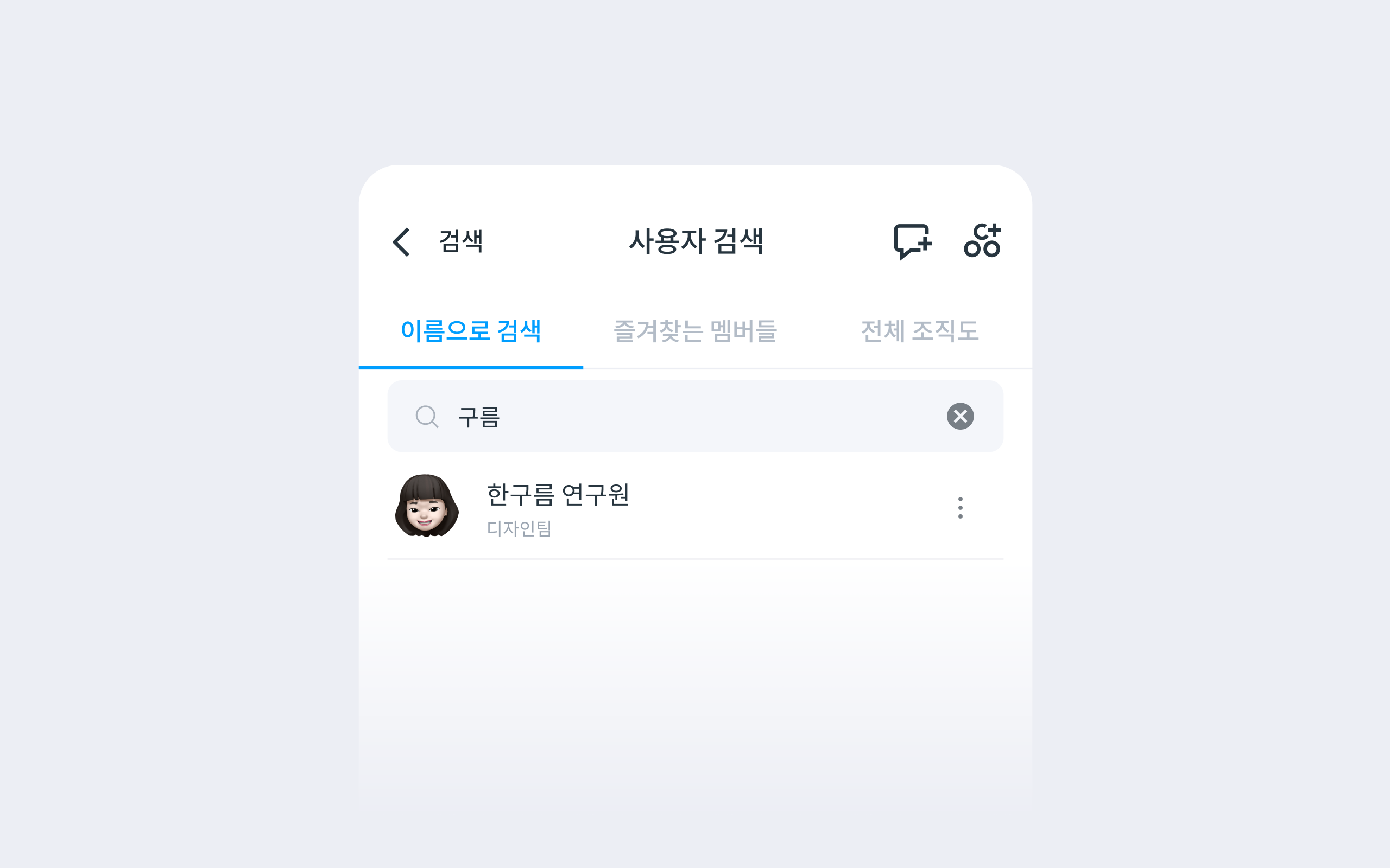 사용자 이름이 나타나면 오른쪽 더보기 아이콘을 클릭해 사용자 정보를 확인하거나 1:1 대화를 바로 시작할 수 있습니다.