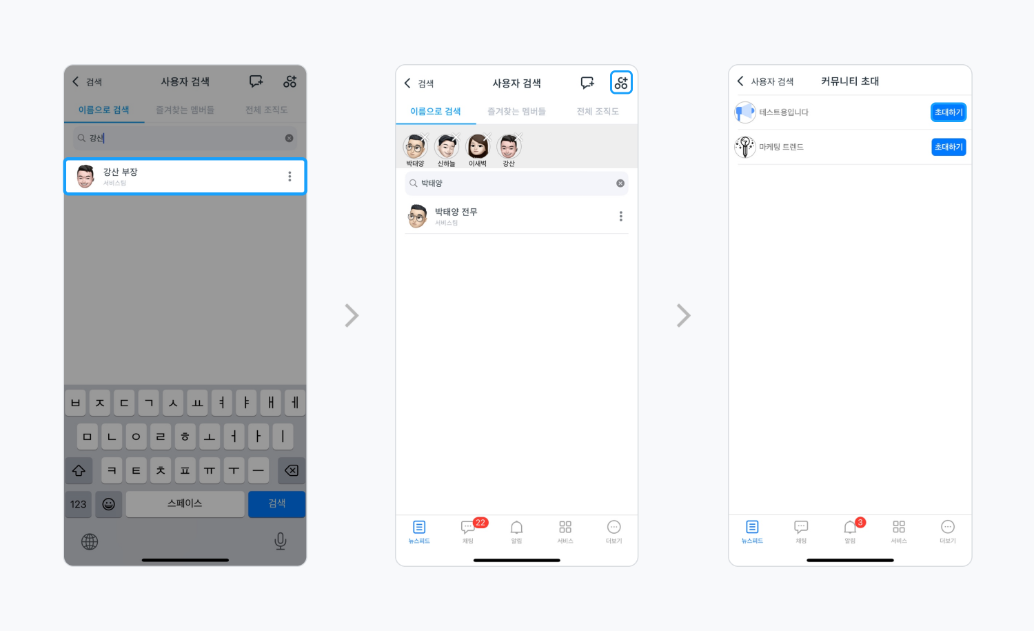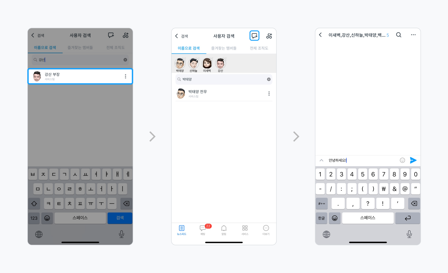 검색 기능을 통해 여러 명의 사용자를 선택해 단체 대화방을 만드는 것도 가능한데요. 아래 방법을 따라 간편하게 그룹 채팅을 시작해 보세요!