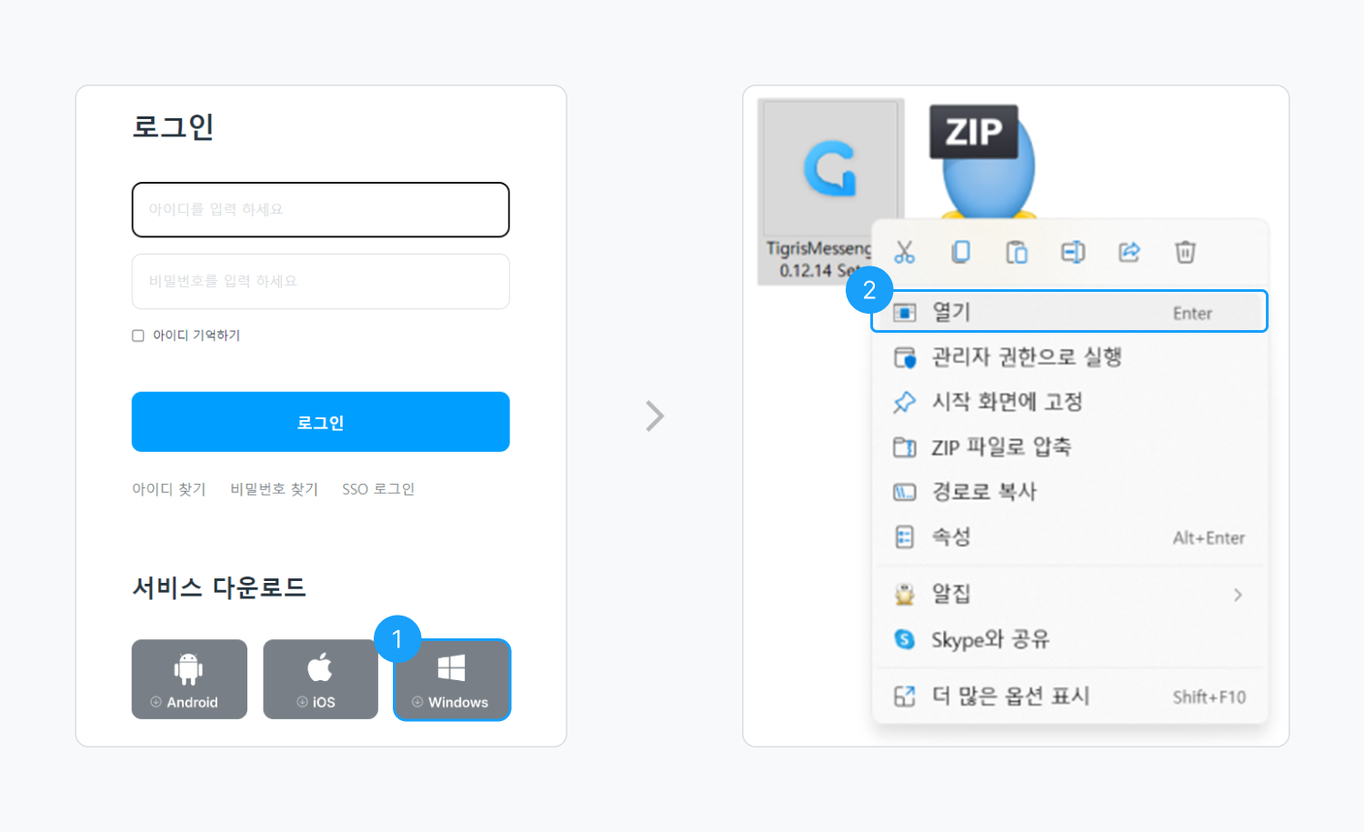아직 티그리스 메신저 설치 전이라면 아래 방법으로 다운로드하실 수 있습니다.