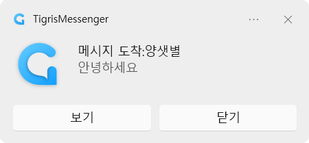 팝업 알림이 없어도 새 메시지 수신 여부를 알 수 있도록 플래시 효과를 추가했습니다. 이제 새 메시지가 도착하면 작업 표시줄에 있는 티그리스 메신저 아이콘이 깜빡거립니다. 웹에 로그인되어 있지 않은 상황에서도 새 메시지를 놓치지 마세요!