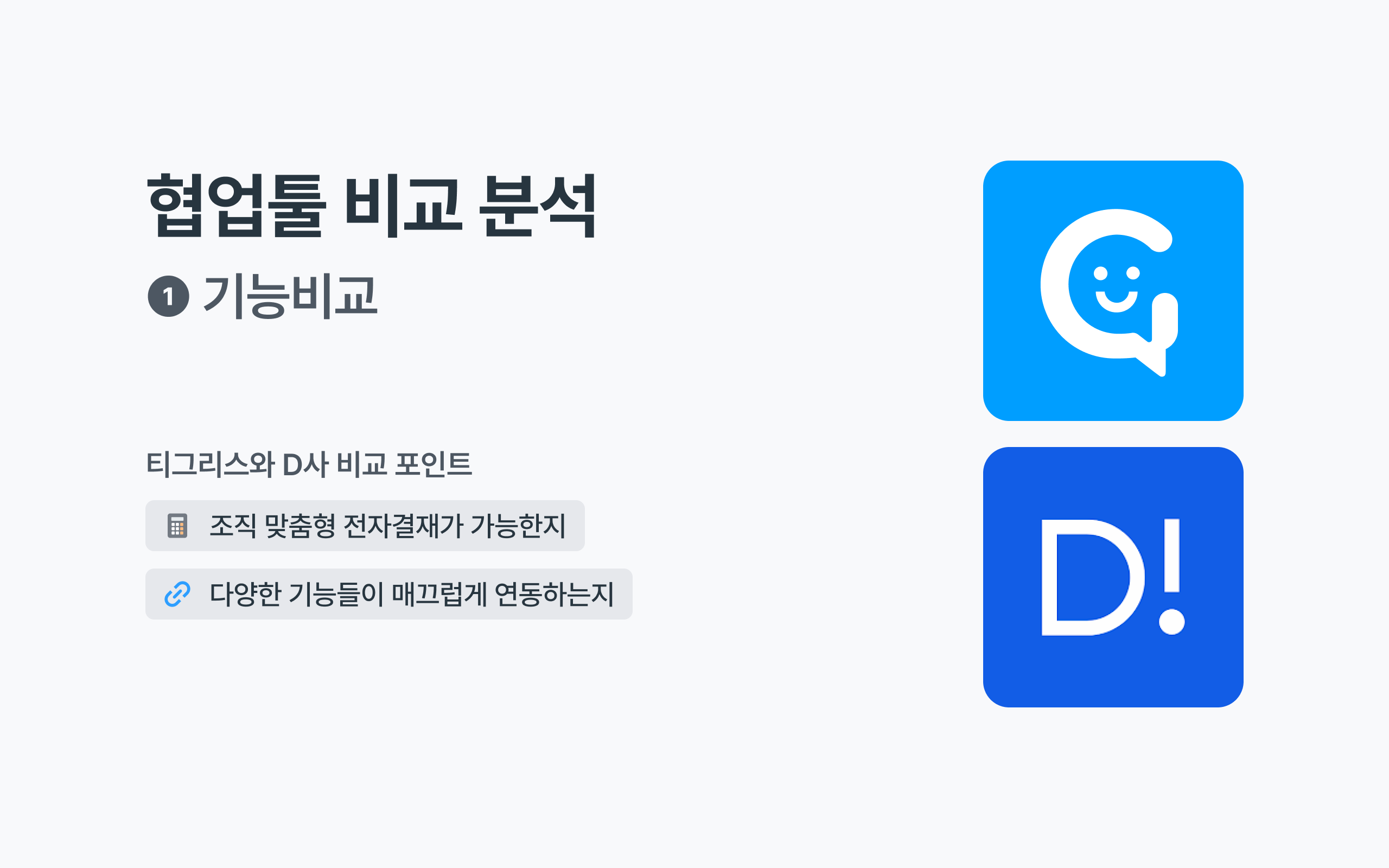 선택이 어려운 담당자분들을 위해 쉬운 업무 플랫폼 티그리스와 주요 협업툴을 비교 및 분석해 드립니다. 주요 기능부터 가격, 장단점까지 꼼꼼하게 설명해 드릴 테니 차근차근 비교해 보세요.