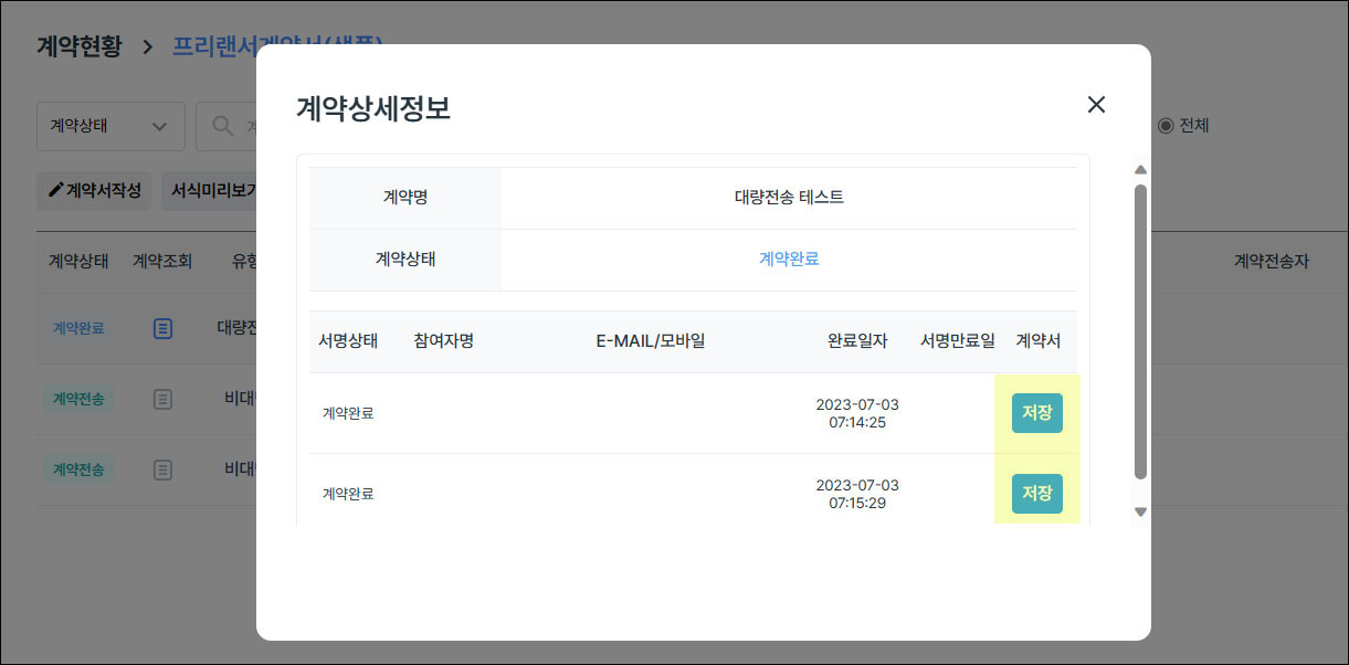 계약서 저장 버튼을 누르면 손쉽게