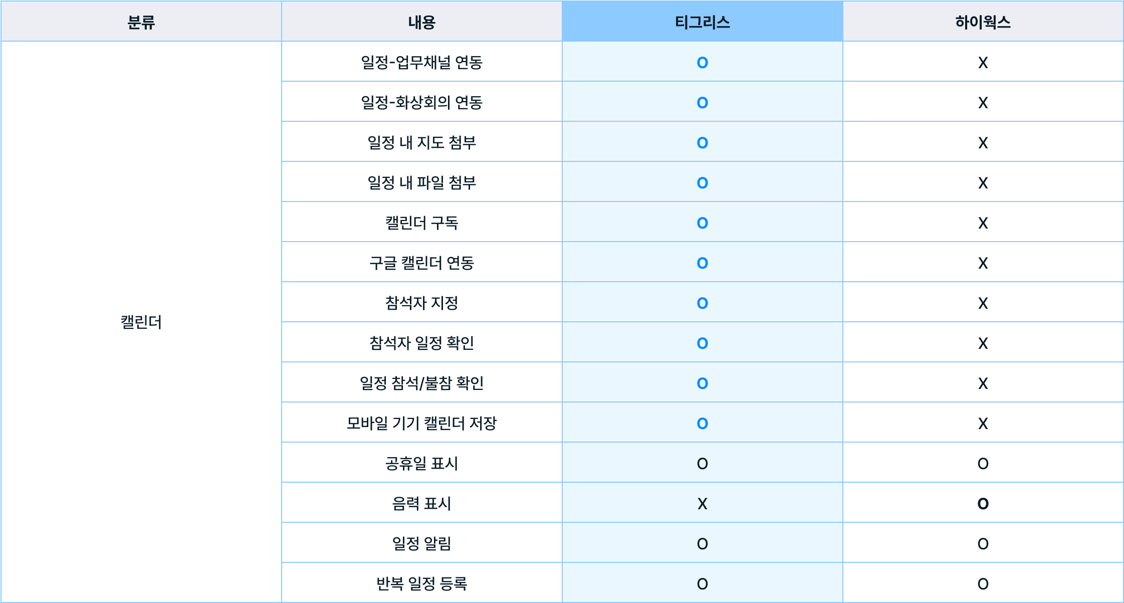 두 서비스의 캘린더는 모두 일정 알림, 반복 일정 등의 일정 관리 기능을 제공합니다. 일정 관리를 위한 부가 기능은 티그리스가 더 많이 제공하고 있습니다.
