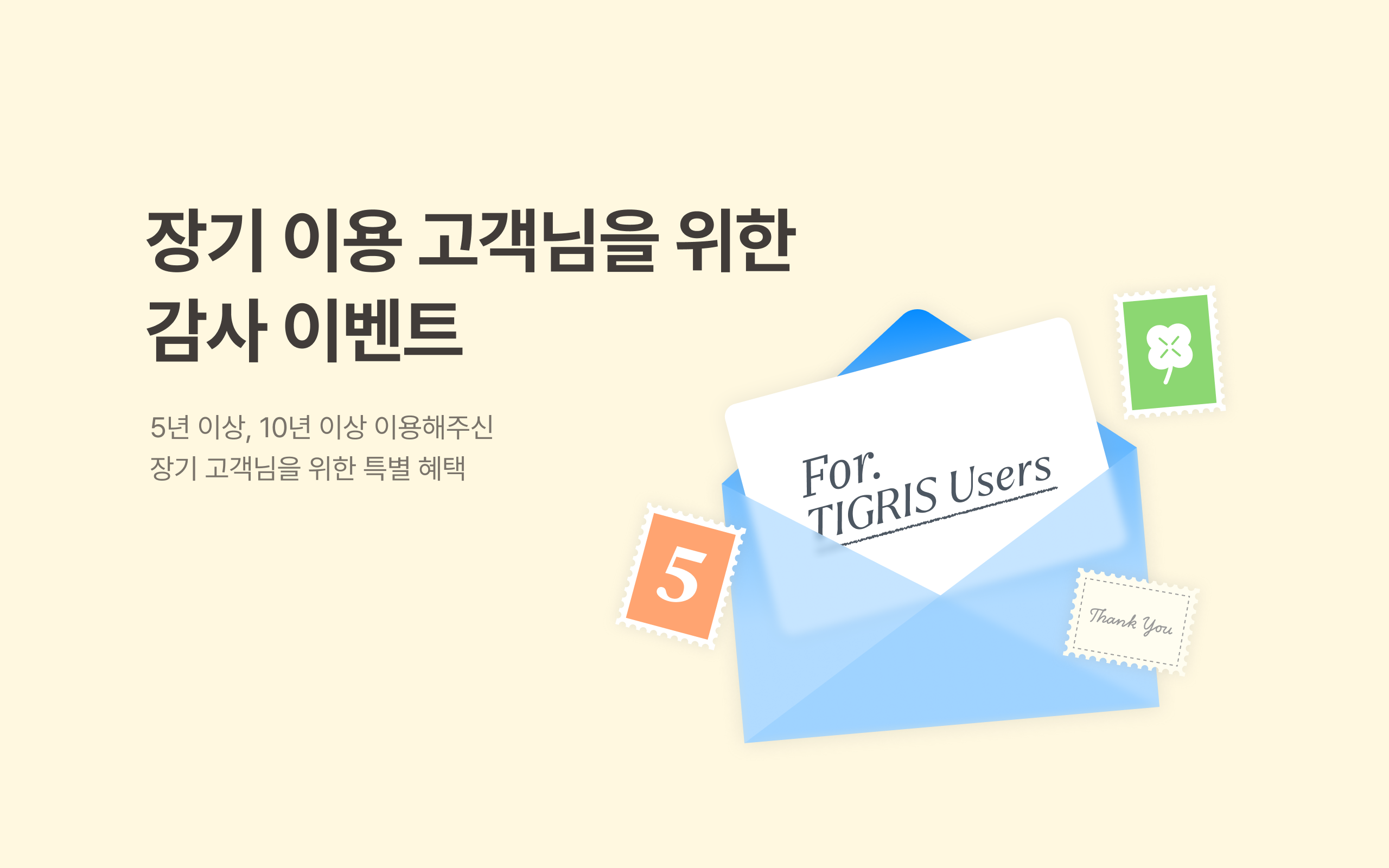 5년 이상 티그리스를 사용한 장기 고객이라면 특별한 혜택을 확인해 보세요!