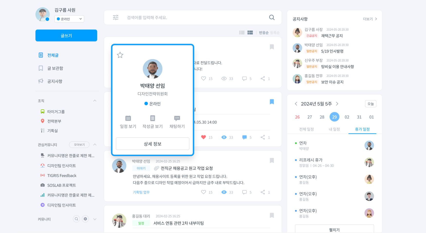 하단의 [상세 정보]를 클릭하여 해당 사용자의 상세 프로필 내용을 확인하실 수 있어요.