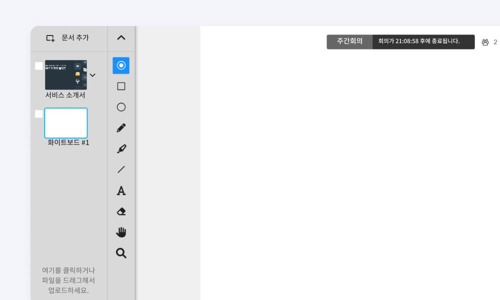 문서 형태로 파일을 공유할 경우, 화이트보드 기능을 함께 활용해 보세요. 펜 메모, 도형 표시, 확대, 텍스트 입력 등 화이트보드 기능을 사용해 문서를 더 쉽게 설명할 수 있습니다.