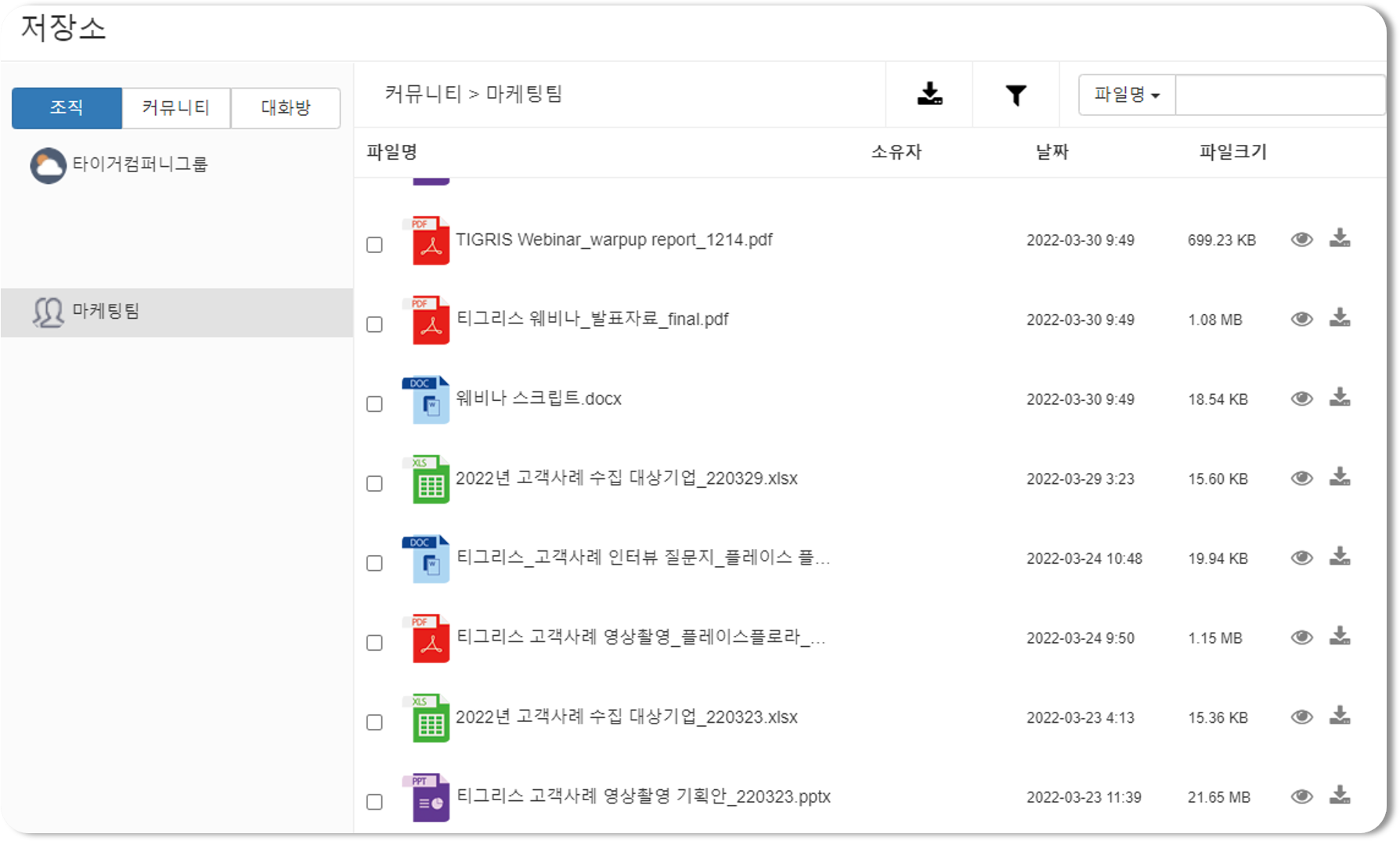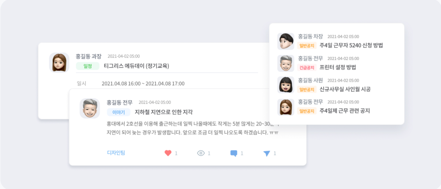 '아 예전에 만든 자료가 참고가 될 것 같은데?' 하고 찾아보다 자료가 보이지 않아 슬퍼한 경험 있으시죠? 업무 자료를 체계적으로 관리해도 이메일에 저장된 대용량 파일이나 카카오톡으로 주고받은 업무 내용과 파일은 일정 기한이 지나면 다시 다운로드하기 어렵습니다. 문서뿐만 아니라, 그 당시에 기록해둔 피드백과 대화 내용들 역시 남기 힘들죠.