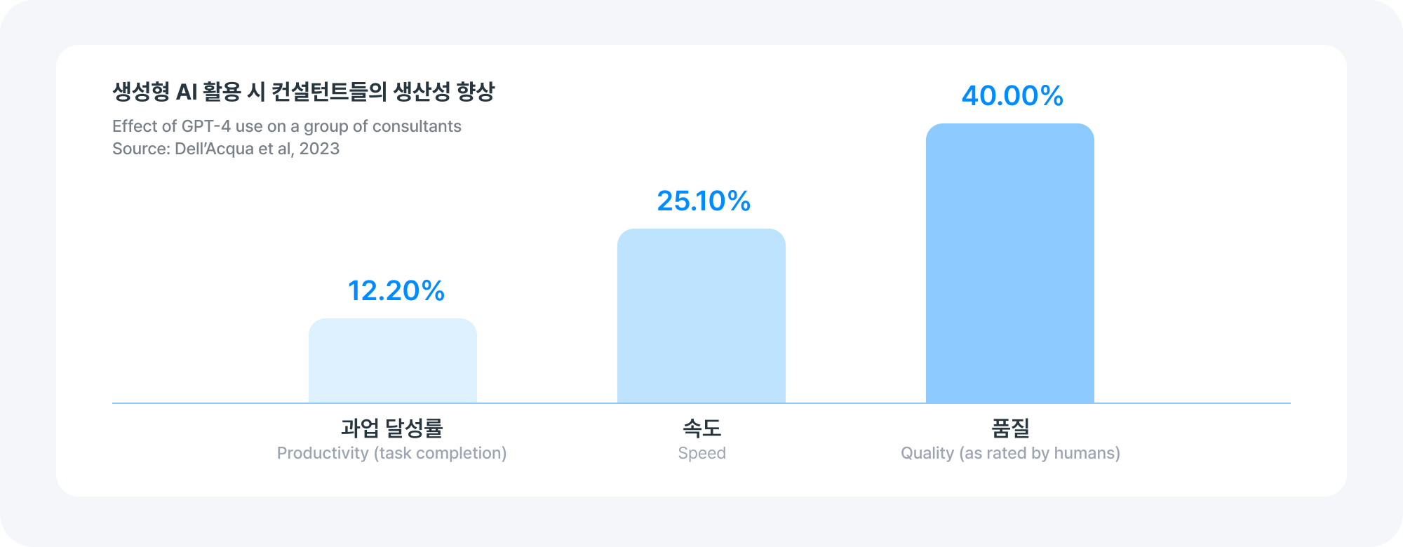 AI는 반복적이고 단순한 작업을 자동화하여 일의 효율성을 높이고 인간의 시간을 절약해 주기 때문에, 업무 환경에서 추구하는 바와 목적이 일치합니다. 따라서 업무에서 AI 생산성 도구의 사용은 앞으로 더 강력한 필수 요소가 될 것입니다.