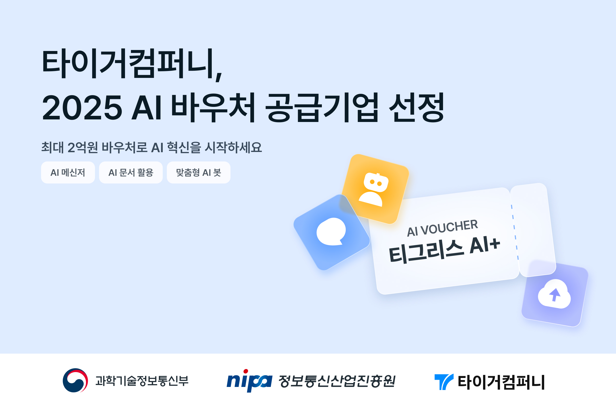 협업툴 티그리스를 서비스하는 타이거컴퍼니(대표 김범진)는 과학기술정보통신부와 정보통신산업진흥원(NIPA)이 주관하는 AI 바우처 지원사업에 공급기업으로 선정됐다고 6일 밝혔다.