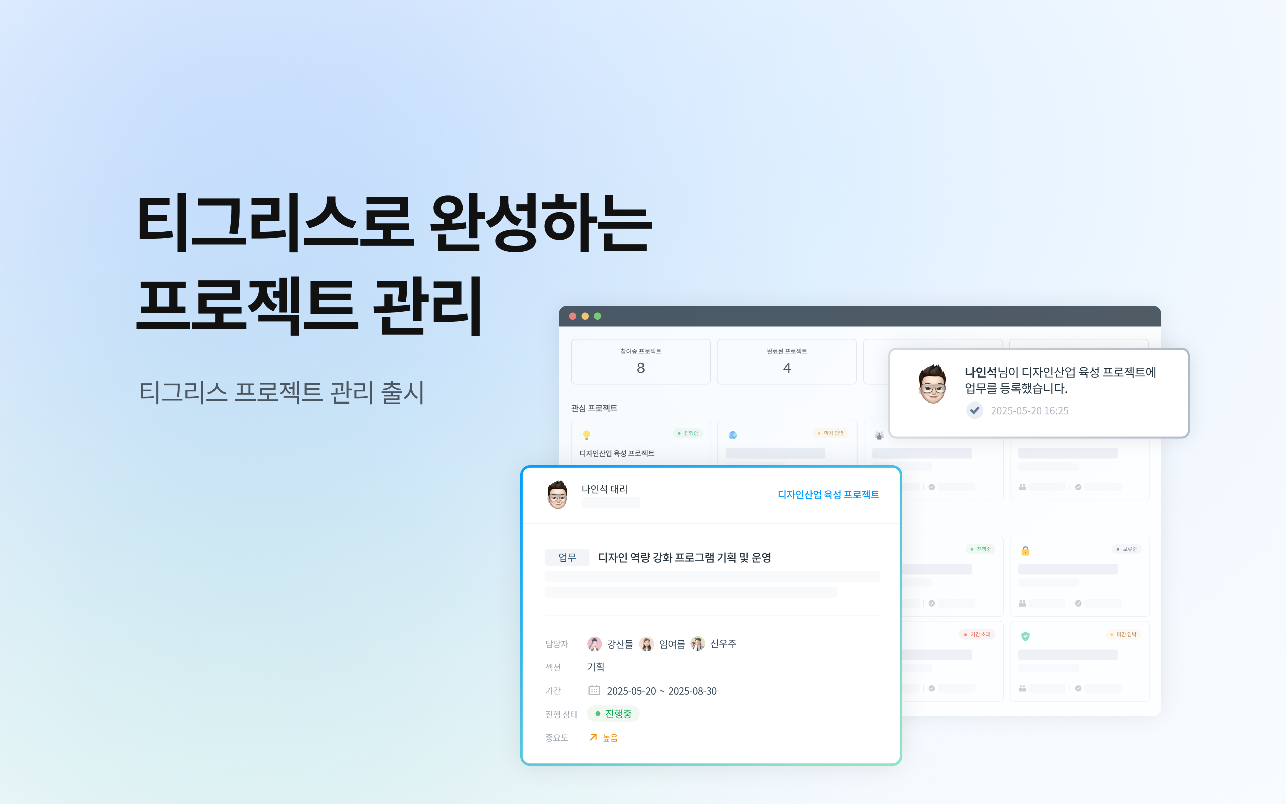 티그리스 프로젝트 관리는 프로젝트의 시작부터 마무리까지 체계적으로 관리할 수 있는 서비스입니다.