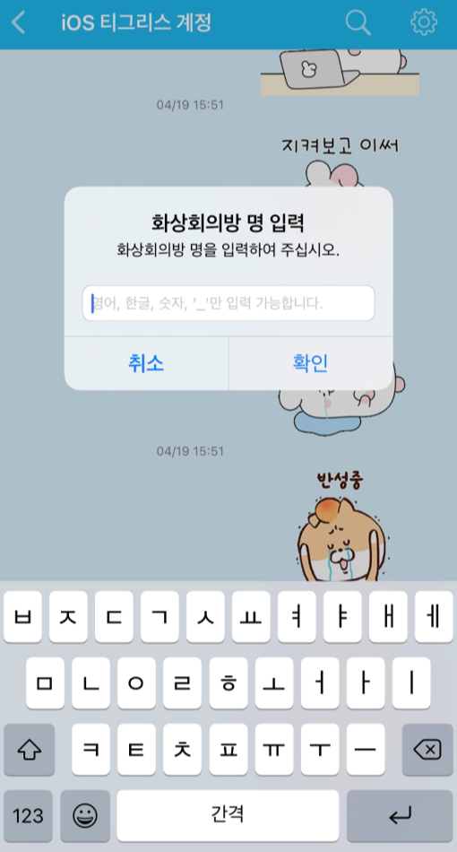 - 화상회의방 이름 지정 가능