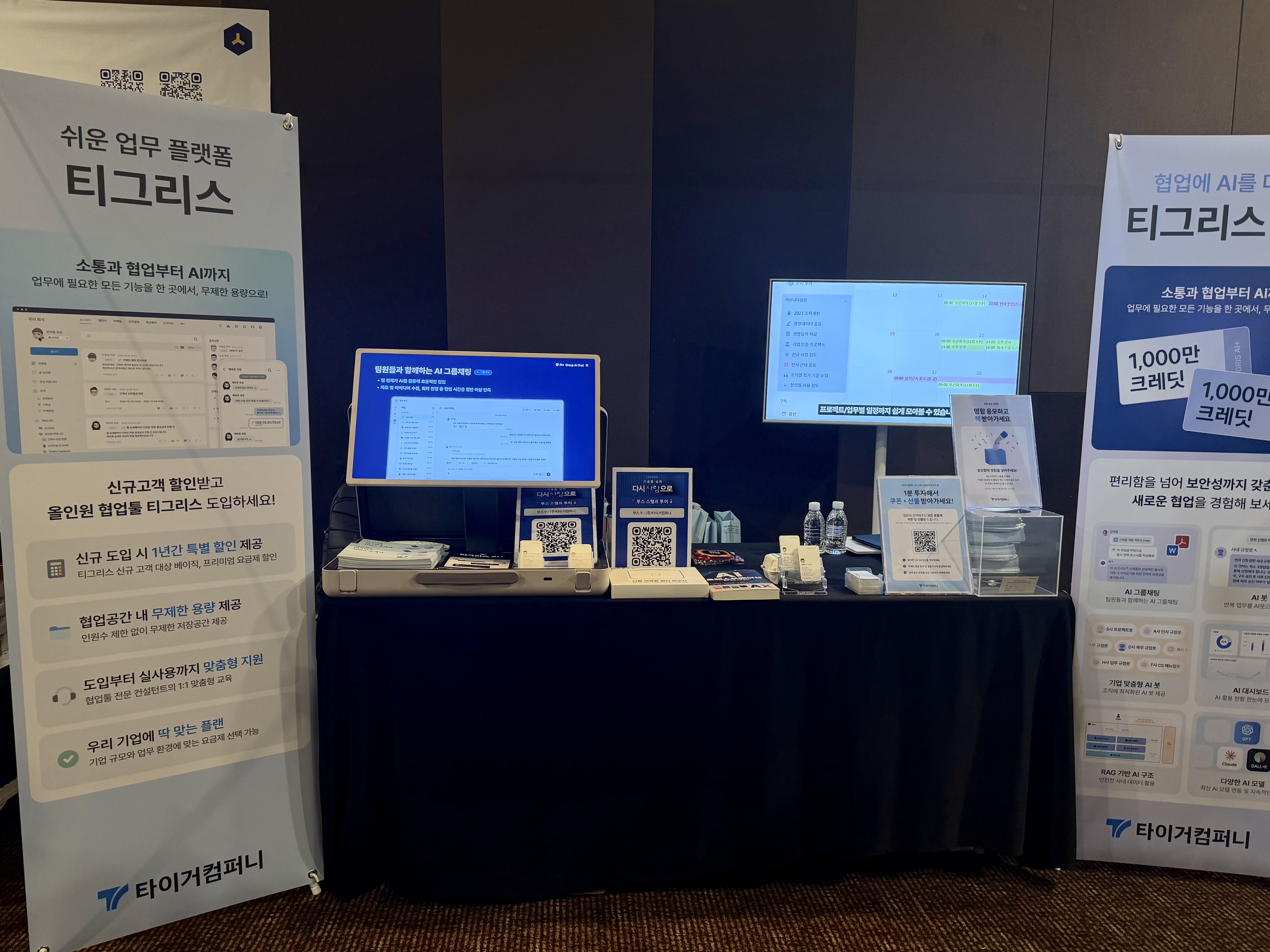 김범진 타이거컴퍼니 대표는 “이번 부스 운영을 통해 AI와 협업툴 도입을 고민하는 실무진들에게 실질적인 도움이 될 수 있었다.”며, “앞으로도 티그리스 AI+로 많은 기업이 업무 혁신을 경험할 수 있도록 서비스를 알리는 데 노력할 것이다”고 포부를 밝혔다.