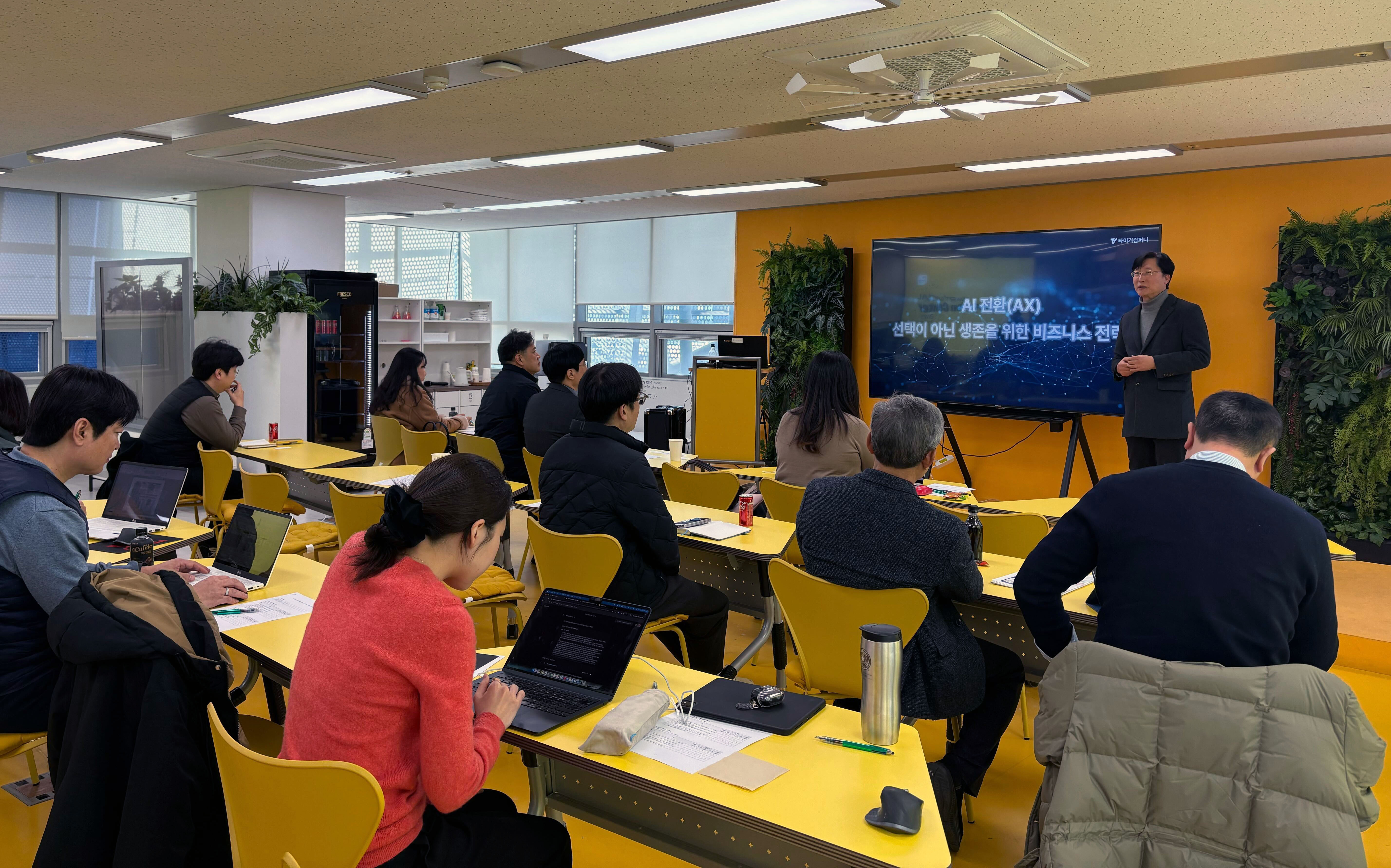 타이거컴퍼니(대표 김범진)는 지난 2월 6일 부산문화콘텐츠콤플렉스에서 부산·울산·경남지역에 소재한 기업을 대상으로 ‘제조 및 중소기업의 AX 도입을 위한 교육·온보딩’ 강연을 진행했다.