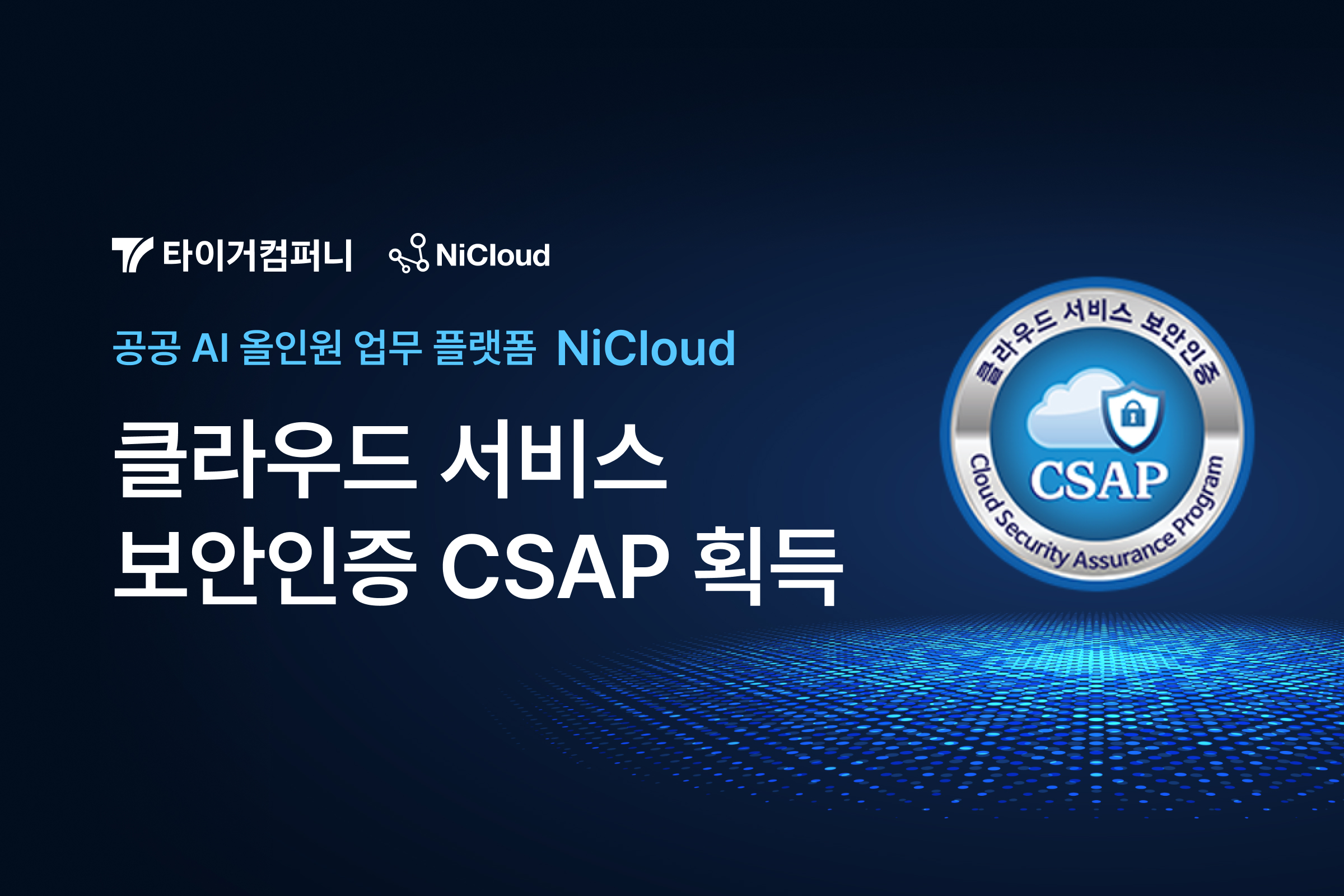 타이거컴퍼니(대표 김범진)의 공공 AI 올인원 업무 플랫폼 NiCloud가 서비스형 소프트웨어(SaaS) 부문 클라우드 서비스 보안인증(CSAP)을 획득했다고 17일 밝혔다.