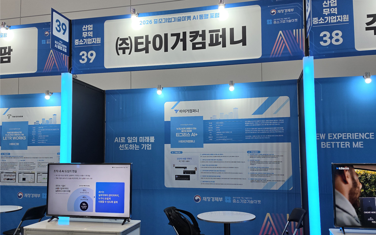 타이거컴퍼니는 지난 4월 21일 세종컨벤션센터에서 열린 ‘2026 중소기업기술마켓 AI 동행포럼’에 참여했습니다.