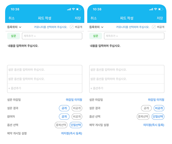 기존에는 설문 작성 시 참여자 공개 여부만 설정할 수 있었는데요. 이제 결과를 공개하지 않는 설문을 작성할 수 있습니다. [글쓰기] – [설문] 탭에서 달라진 옵션을 확인하세요.
