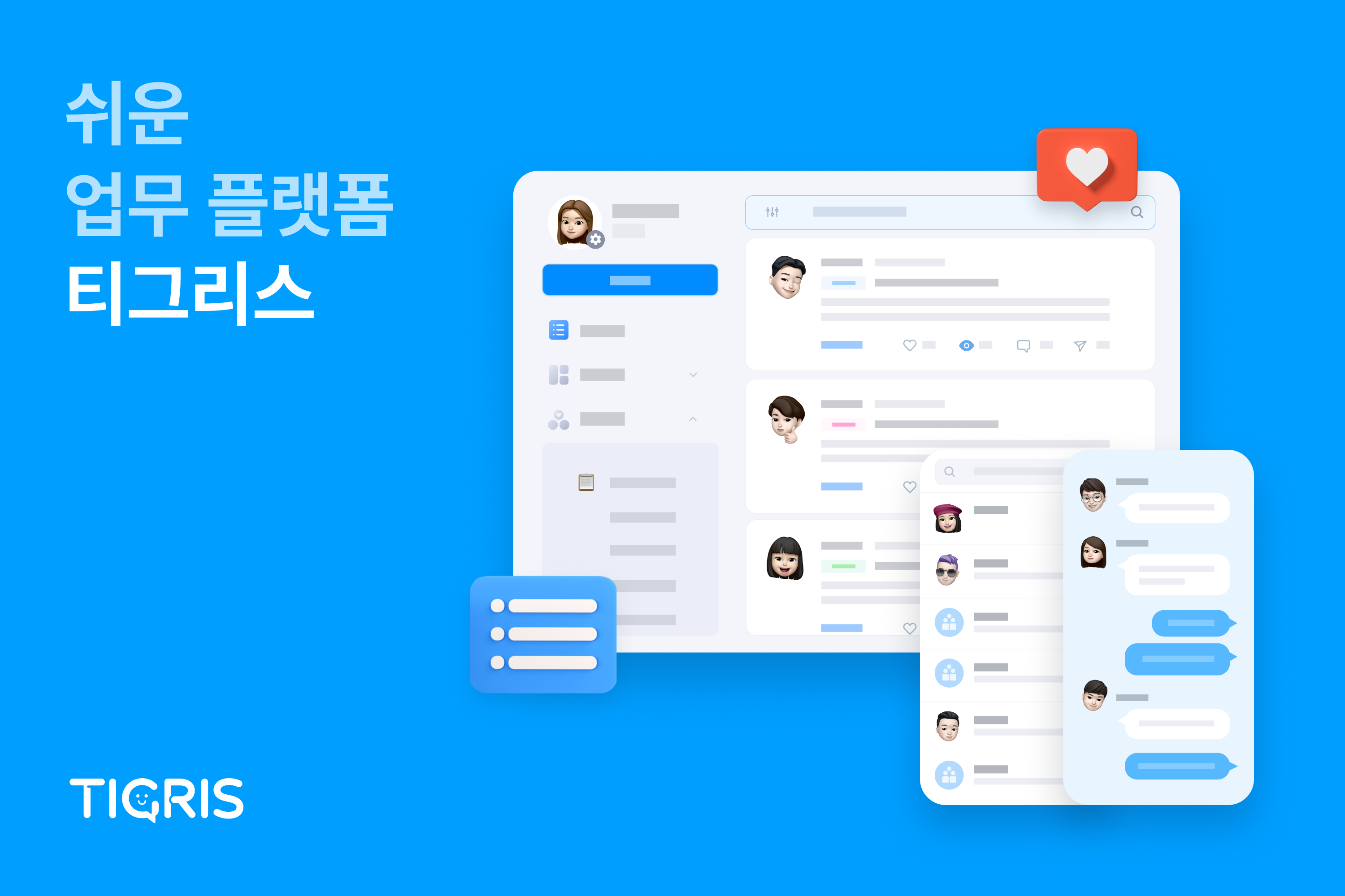 현재 티그리스는 조직의 원활한 협업을 위해 뉴스피드 기반의 협업 공간, 메신저, 캘린더, 이메일, 전자결재, 영상회의, 인사·근태관리 등 업무에 필요한 대부분의 기능을 제공하고 있습니다. 근무제 실험을 통해 어떤 근무 환경에서도 모두가 더 쉽게 일할 수 있도록 추후 새로운 기능을 선보일 예정입니다.