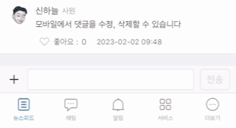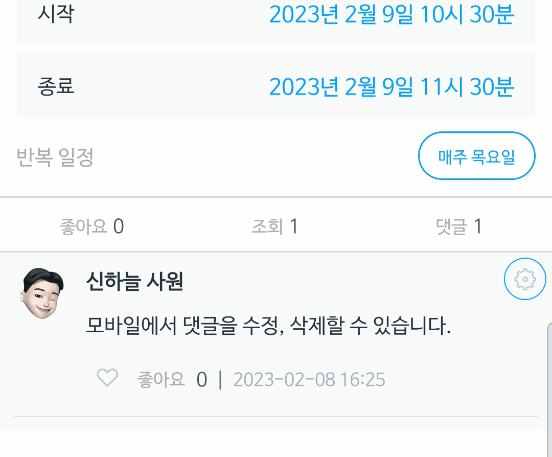 안드로이드 앱에서는 댓글 오른쪽 상단 설정 아이콘 [⚙️]을 클릭하면 수정 또는 삭제가 가능합니다.