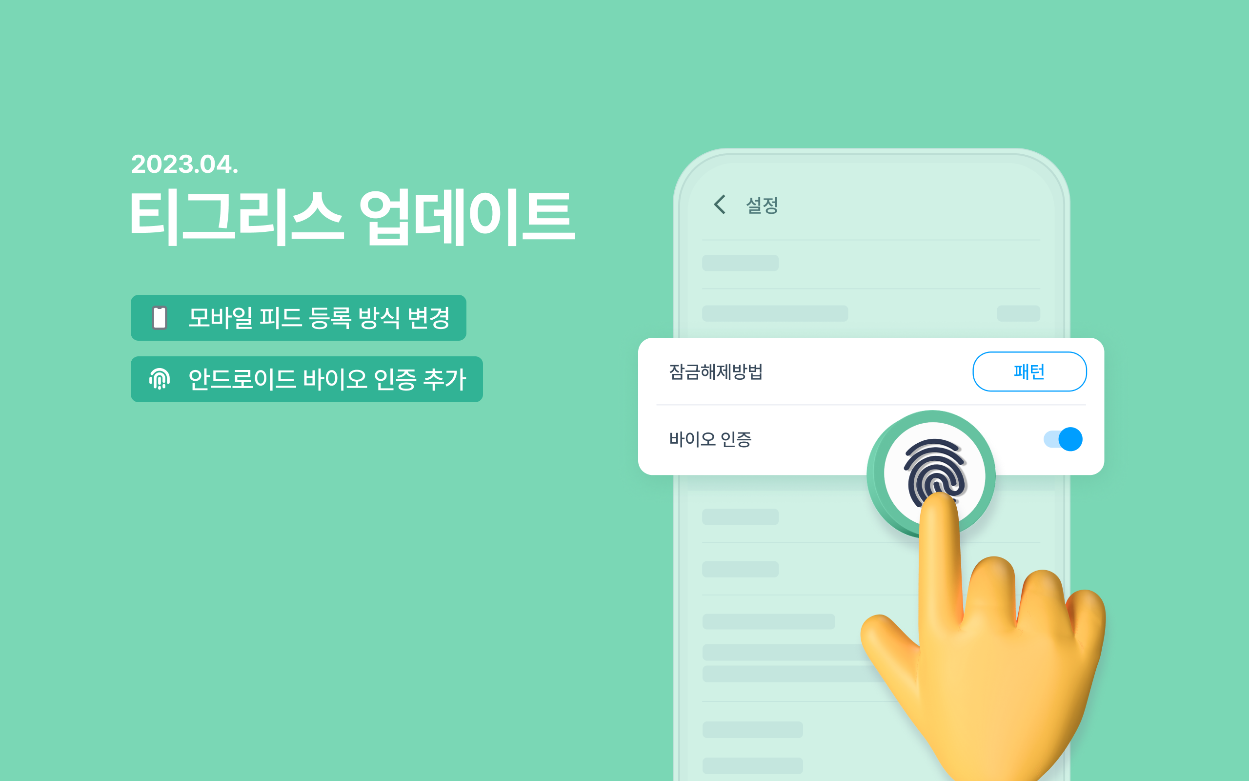 지난 만족도 조사에서 바이오 인증으로 티그리스 앱을 잠금 해제할 수 있도록 개선해 달라는 사용자 의견이 있었습니다.