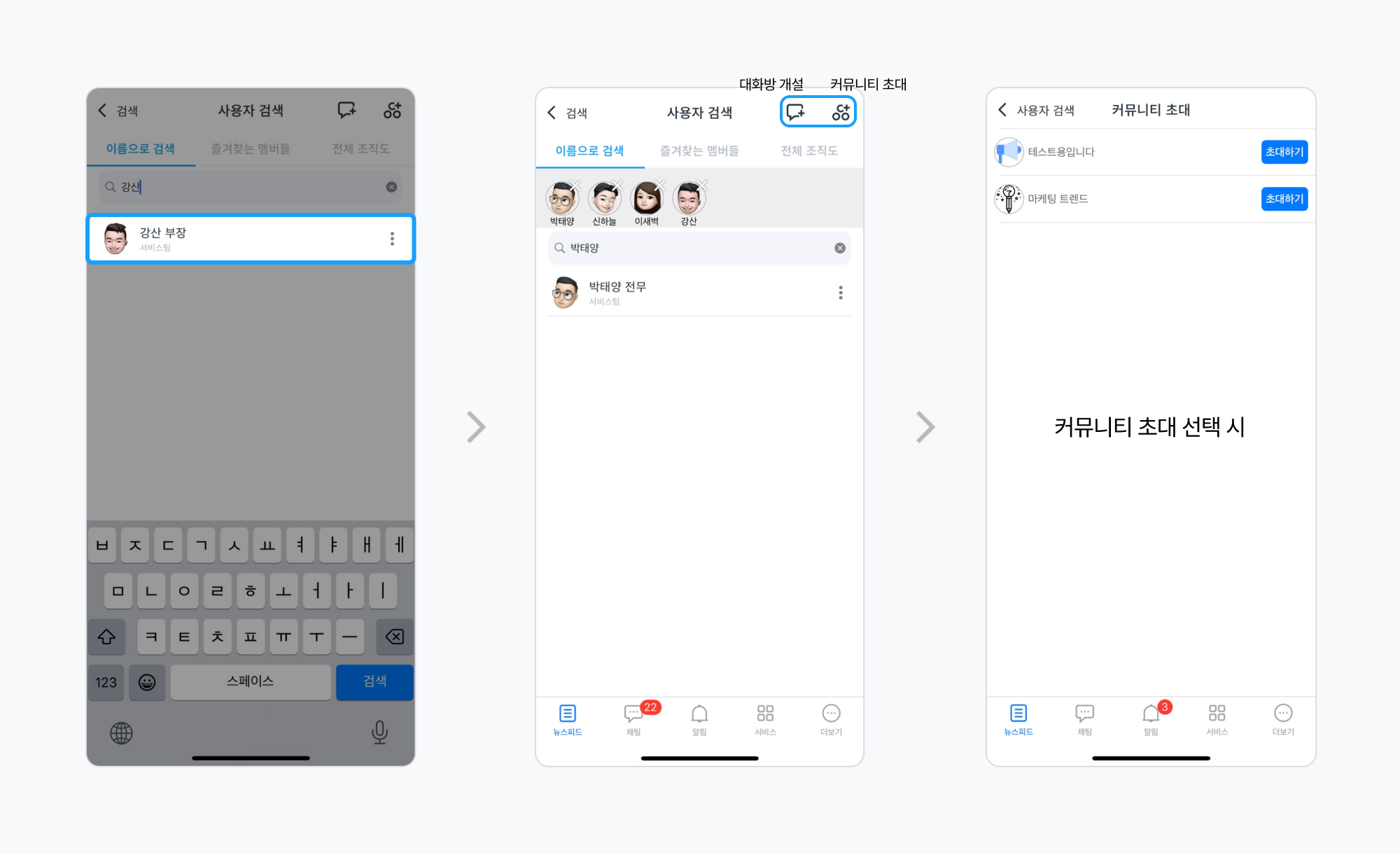사용팁을 확인하셨다면, 조직도에서 부서명을 여러 번 클릭하는 대신 검색에서 빠르게 사용자를 찾고 대화를 시작해 보세요!