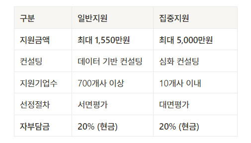 수요기업은 클라우드 도입 및 운용비를 최대 1,550만원(일반지원) 또는 5,000만원(집중지원)까지 지원받을 수 있습니다. 자부담 비율은 20%로 현금으로 부담해야 합니다.