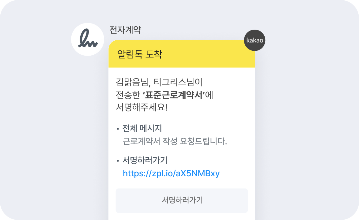 작성한 계약서는 카카오톡, 이메일 등