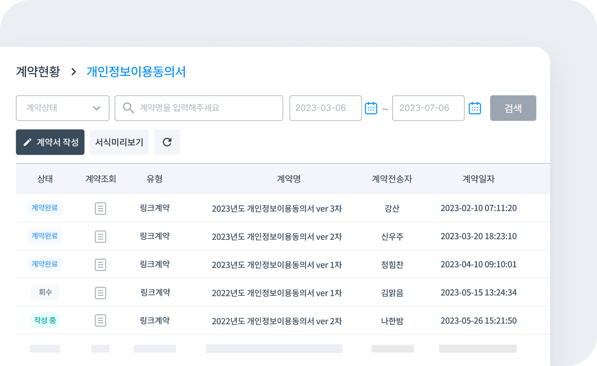 계약서 작성부터 전송, 계약 이력 관리까지
