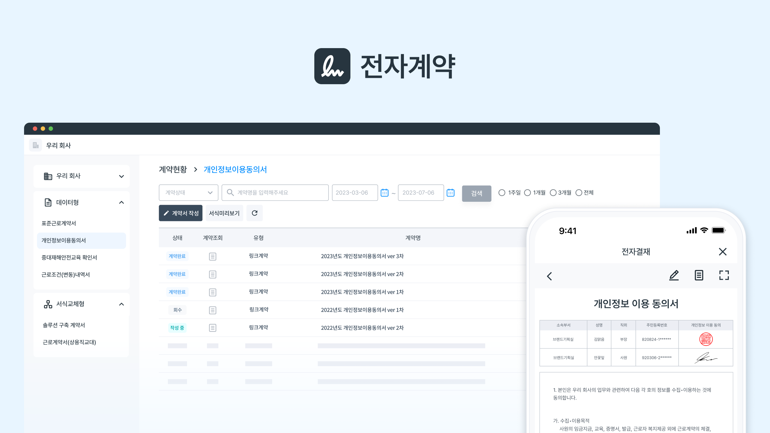 기업 내 모든 계약 이력을 통합 관리해 보세요.